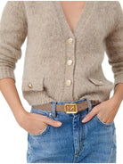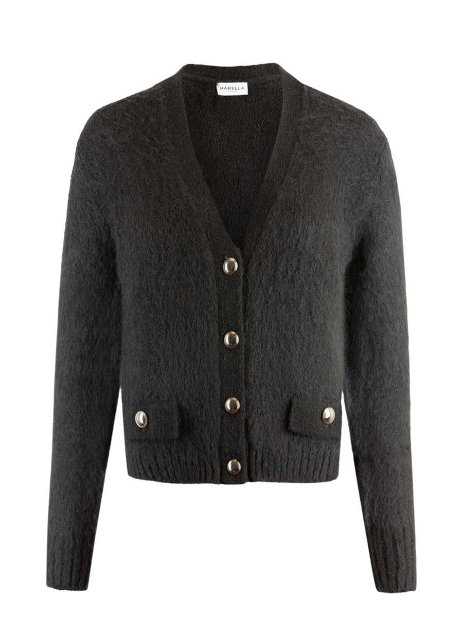 Il cardigan MARELLA si distingue per la sua lavorazione in mohair, un materiale morbido e lussuoso, che offre un comfort eccezionale. Presentando una linea semiaderente, questo cardigan veste con eleganza e versatilità. Il tradizionale scollo a V si complementa armoniosamente con le maniche lunghe, mentre la chiusura con bottoni in metallo aggiunge un tocco di brillantezza. Le finte tasche con patta e bottone sono un dettaglio di stile che eleva ulteriormente il design. Composto dal 49% di acrilica, 17% poliammide, 16% mohair, 16% lana e 2% elastan, questo cardigan coniuga qualità e resistenza, rendendolo un capo indispensabile per ogni guardaroba.