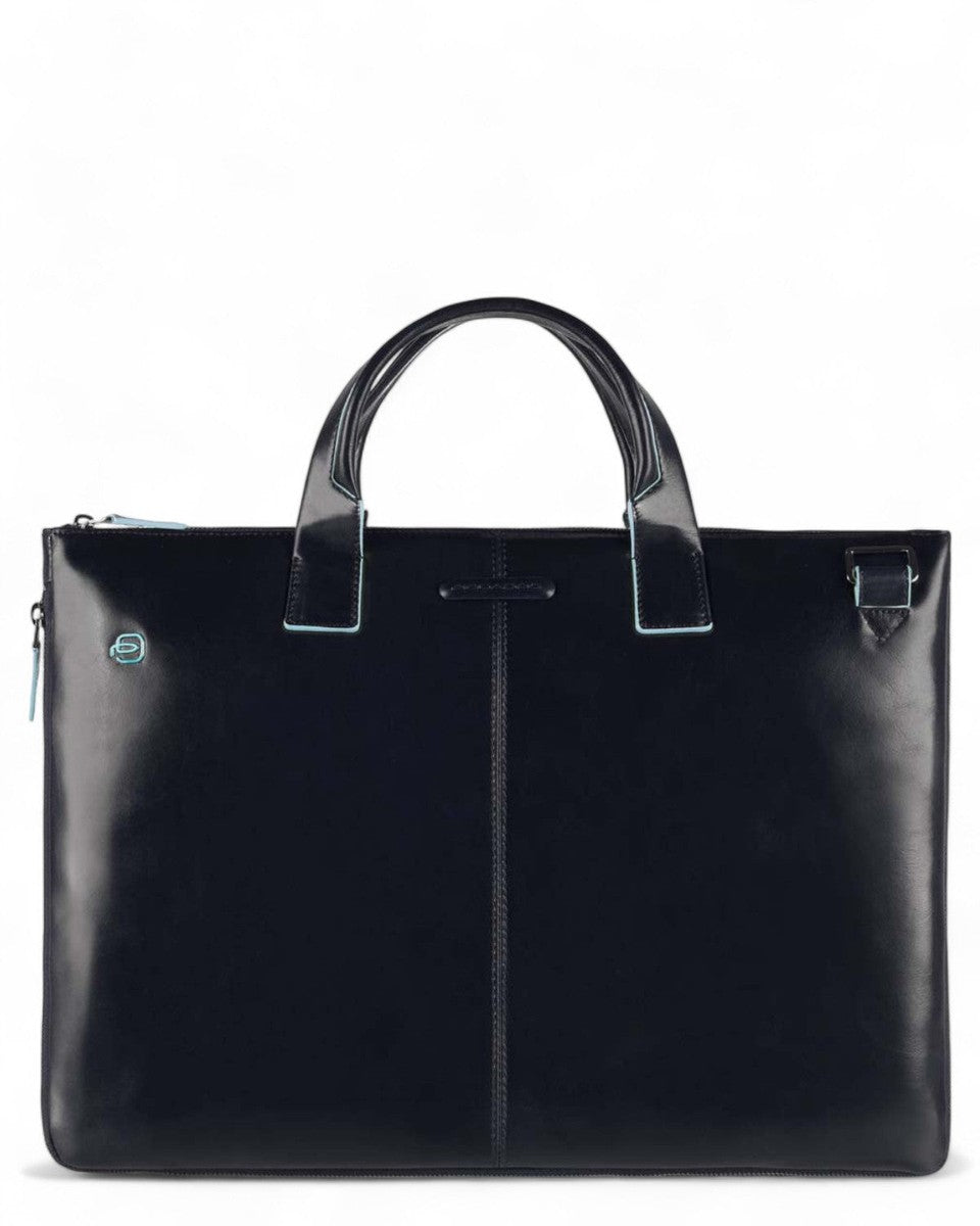 Cartellina sottile in pelle due manici blue square