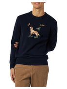 Maglia girocollo in donegal con stampa jacquard puntatore inglese