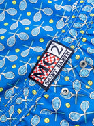 - Stampa all over di racchette e palline su sfondo azzurro