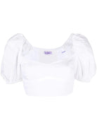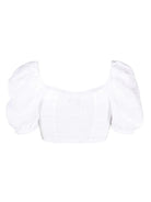 Bianco latte, lino/fibra di lino, scollo a cuore, maniche corte, design crop e orlo dritto. Questo articolo contiene almeno il 50% di materiali certificati o ampiamente riconosciuti per il loro basso impatto ambientale